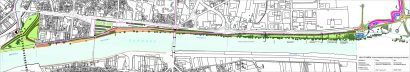 – Redéfinir l’emprise de la voie sur berge, ralentir la vitesse de circulation et utiliser l’espace restant pour installer la voie douce, sans remettre en cause sa fonction première.